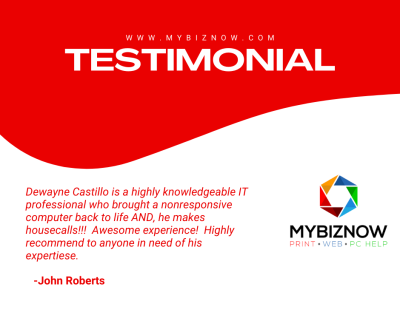 Dewayne was quick to respond to my call for help and was crisp, professional, knowledgeable, and timely. The cost was more than reasonable, and my computer was good as new the next day. I highly recommend!
